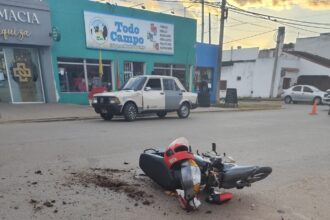 CHOQUE ENTRE AUTOMÓVIL Y MOTOCICLETA EN URQUIZA Y BROWN: CONDUCTOR DE LA MOTO RESULTÓ CON LESIONES LEVES