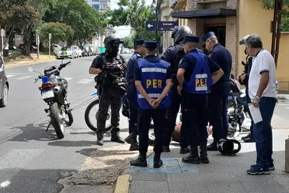 Dicha maniobra fue observada por un oficial de la Unidad Motorizada de la Policía que comenzó a seguirlo dandole avisos de luces y sirenas, a los cuales el motociclista hizo caso omiso y, en la intersección de calles Estrada y Urquiza, colisionaron ambos rodados y cayeron a la cinta asfáltica.
