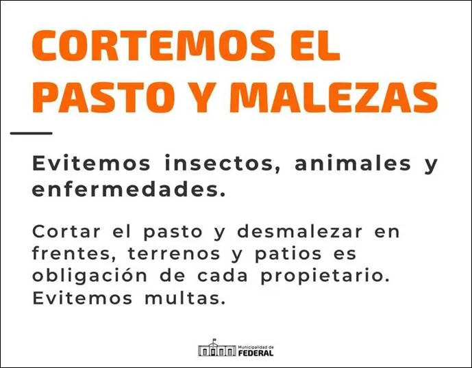 En una publicación en cuentas oficiales del municipio se advierte a los vecinos de la necesidad de cortar el pasto y desmalezar, lo que es una obligación de cada propietario, evitando de este modo la aplicación de multas.