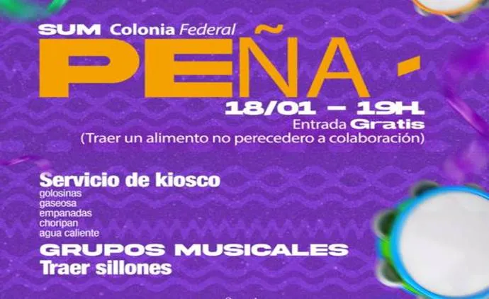 Será el sábado 18 a partir de las 19h. Organiza: La nueva Comisión Colaboradora del SUM Colonia Federal.