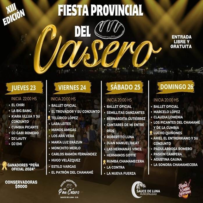 Del 23 al 26 de enero de 2025, Sauce de Luna se viste de fiesta con la XIII Fiesta Provincial del Pan Casero.