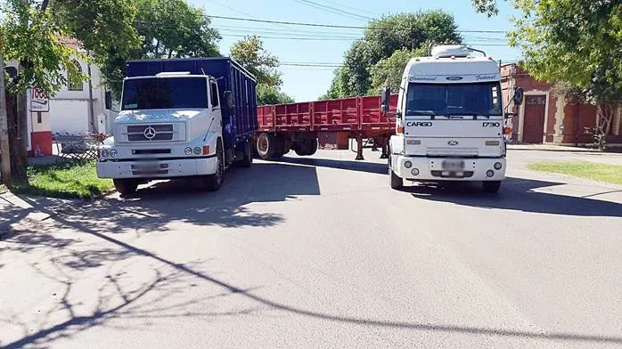 10:57hs. Siniestro con daños materiales, en calle Hernani Cuneo e Hipólito Irigoyen (sin lesiones). Entre un camión Mercedez Benz, estacionado en calle H. Irigoyen (estacionado en ochava) y un camión Ford Cargo N°1730, de una empresa de venta de materiales para la construcción, que conducía en sentido contrario por calle Hernani Cuneo. Trabajó personal de tránsito municipal.