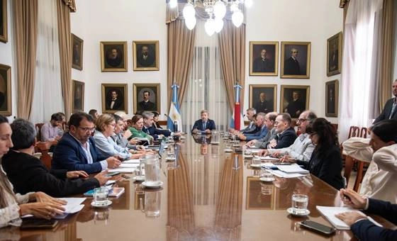 Del encuentro participaron, además de ministros y secretarios, la vicegobernadora Alicia Aluani, y el presidente de la Cámara de Diputados Gustavo Hein. En ese marco, el ministro de Desarrollo Económico, Guillermo Bernaudo, relató que se plantearon “varios temas de interés”.