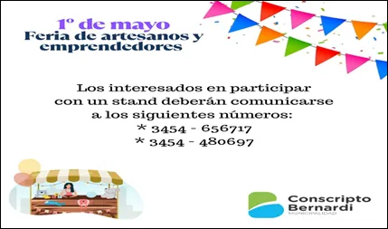 El 1 de mayo, feriado por el día del trabajador, se llevará a cabo una feria de artesanos y emprendedores en C. Bernardi, localidad del Departamento Federal.