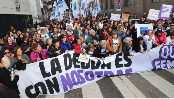 “Contra la crueldad, el hambre y el saqueo, ni una jubilada menos” fue la consigna principal, a la que adhirieron la Unión Trabajadores de la Economía Popular (UTEP), las dos CTA, el Colectivo Fin de un Mundo, agrupaciones piqueteras, partidos de izquierda, Libres del Sur y otros sectores sociales y gremiales, como ATE, Curas Opción por los Pobres y Nuestra Patria.
