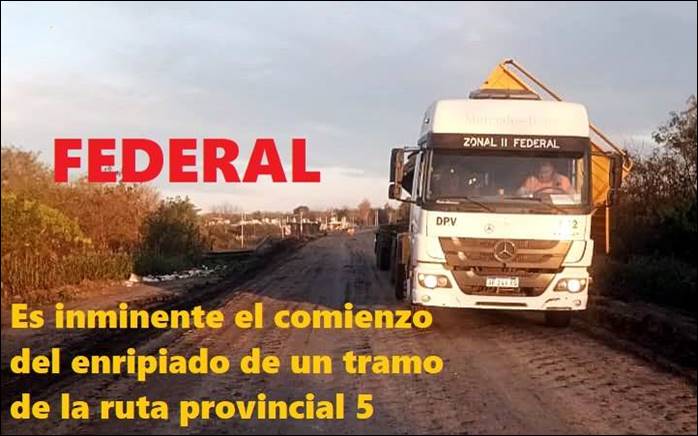 El Jefe de la Zonal II de la Dirección provincial de Vialidad, Néstor Valiente, dijo al programa #RadioSabado de #RadioIntegracion905, que por la decisión política del Gobernador Frigerio, se pudo comenzar con la obra de reconstrucción de unos 5 kilómetros de un tramo de la ruta provincial N° 5, hasta un poco más delante del Hospital Psiquiátrico y la Unidad Penal 8. ESTE MARTES COMENZARÍA LA COLOCACION DE RIPIO SOBRE LA BROSA YA APLICADA AL SUELO.