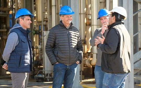Adán Bahl, Guillermo Michel y Rodrigo Minguillón visitaron la planta de producción de biodiesel y glicerina en Nogoyá, a fin de conocer las demandas y desafíos que tiene el sector.
