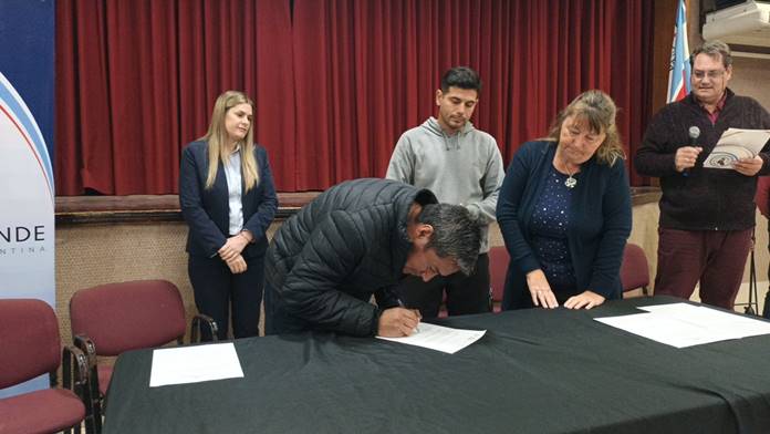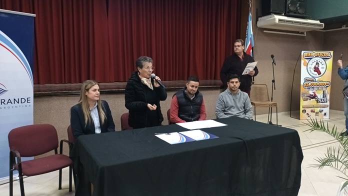 Allí se hizo entrega de un termotanque, de 300 litros, para uso con energía solar, a la Asociación de Bomberos Voluntarios de la ciudad, y una cortadora de césped para el Club Escuela Dieguito.
