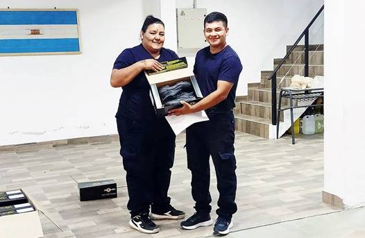 Al realizar tareas de limpieza y mantenimiento del cuartel y de los móviles, nuestros bomberos también están expuestos a sufrir accidentes o dañar la ropa institucional que utilizan. Es por ello que el día miércoles, luego de compartir una cena con comisión directiva y miembros de la federación entrerriana, el personal del cuerpo activo recibió 1 par de calzado cada uno para poder utilizar cuando lo requieran.