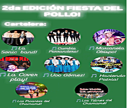 La cartela artística de la 2da. Edición de la Fiesta del Pollo estará conformada por: