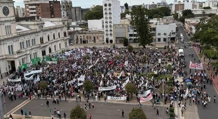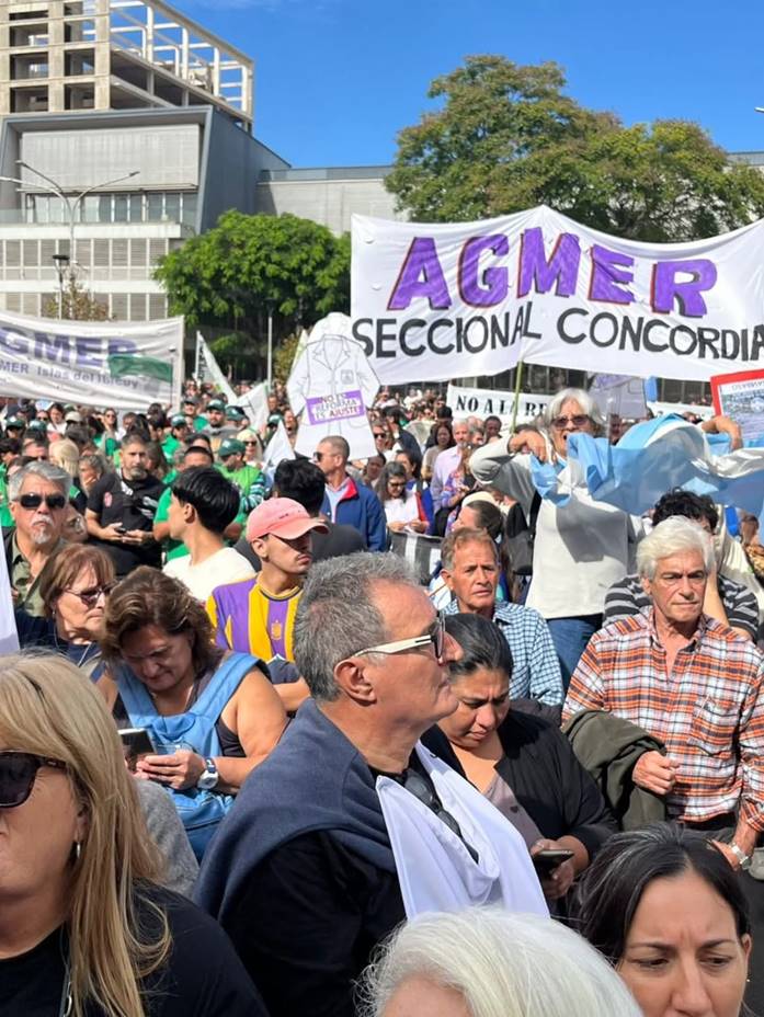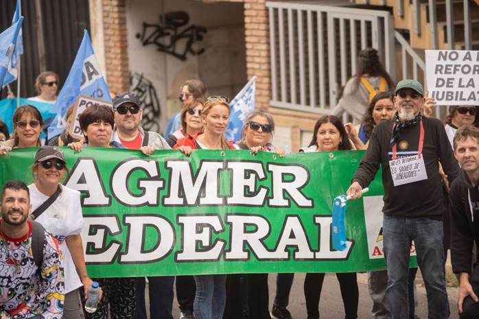 ATE, Agmer y la Federación de Jubilados encabezaron la columna de la uqe también fueron parte los judiciales nucleados en AJER, los docentes de AMET y Sadop; los universitarios de Sitradu y AGDU, el personal del Túnel Subfluvial, los trabajadores de la Legislatura y distintos agrupamientos de jubilados provenientes de distintos puntos de la provincia.