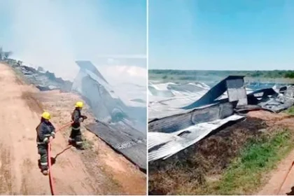 DPTO. FEDERAL: INCENDIO DESTRUYE GALPON PARA LA CRÍA DE POLLOS