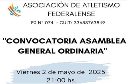 Se convoca a los señores asociados de la Asociación de Atletismo Federalense…