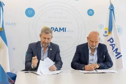 El director ejecutivo de PAMI, Esteban Leguízamo, y el gobernador Rogelio Frigerio,…