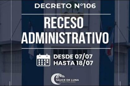 SAUCE DE LUNA: EL MUNICIPIO HARÁ UN RECESO ADMINISTRATIVO
